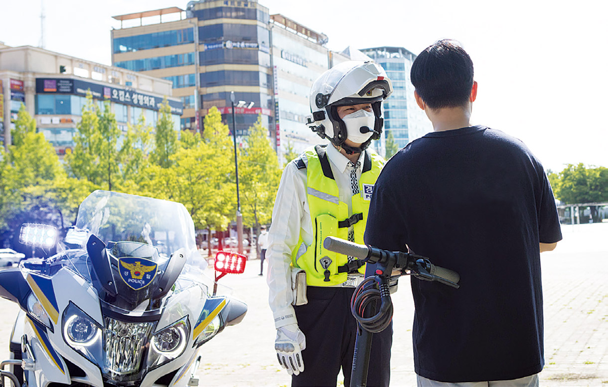 그때, 그의 말이 끝나기가 무섭게 싸이렌을 울리며 달리기 시작했다. 그가 멈춰선 곳은 한 전동킥보드 앞. 안전모도 없이 인도 주행한 것이 단속 원인이었다. “요즘 PM 이용자가 엄청나게 늘어나고 있는데, 그에 비해 안전수칙에 대한 인식은 부족한 것 같습니다. 무면허, 음주운전, 안전모 미착용과 인도주행으로 최근에 많이 단속하고 있어요.” 문성준 경위는 지난 6월 관내에서 PM 이용자의 음주운전을 처음으로 발견하고 단속했다. 개인형 이동장치에 관한 도로교통법 개정 시행 한 달 만이었다. “PM 음주운전도 자동차와 마찬가지로 면허정지나 취소처분을 받을 수 있습니다. 안전의식을 가지고 이용해야 하는 이동수단인 만큼 많은 분들이 경각심을 가지셨으면 합니다.”