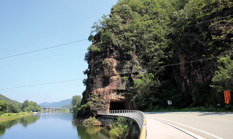 국도 5호선 바로 위에는 천연기념물로 지정된 곳이 있다. 안동에서 대구로 넘어가는 국도 5호선 절벽바위가 그곳이다. 안동구리측백나무숲이라 불리는 이곳은 천연기념물 252호로 지정돼 보호되고 있다. 우리나라에서 몇 안되는 측백나무 자생지로 인정받았기 때문이다. 절벽에 뿌리내린 측백나무와 함께 소나무, 굴참나무, 조팝나무 등이 자생하고 있어 절벽바위 자체의 기상또한 아름답기 그지없다. 5호선 국도를 따라 달리게 되면 한 번쯤 꼭 들러 그 위용있는 모습을 느껴보길 추천한다.