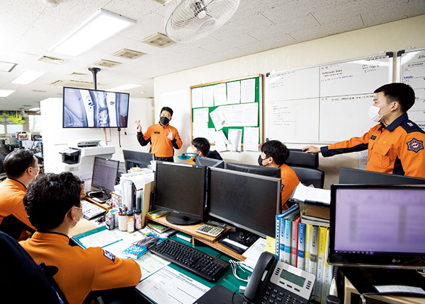 “영상을 띄워놓고 브리핑을 하고, 같이 보면서 대원들의 의견을 듣습니다. 영상을 같이 살피며 작업할 때 안전에 미흡했던 것을 보고 체크하죠. 다른 팀원들이 한 것을 보면서 현장에서는 모르지만, 나중에 영상이나 다른 시각으로 보면 보이는 것이 있으니까 환기시키는 것입니다. ‘이런 점은 조심해야 겠다’ 하며 사고도 방지할 수 있는 중요한 업무입니다.”
