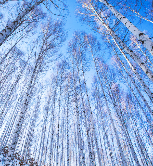 겨울이면 순백으로 빛나는 자작나무 숲.