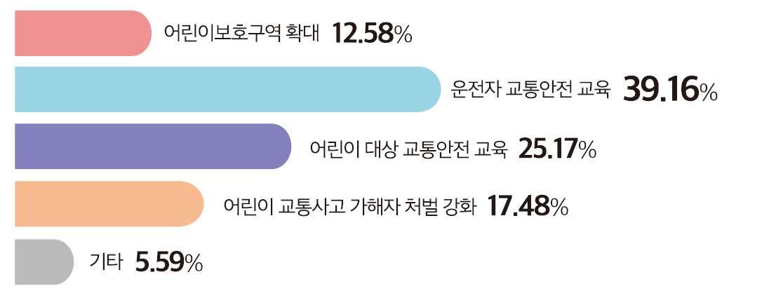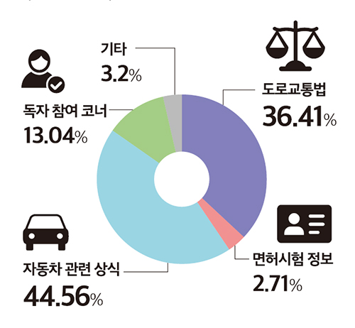 신호등 관련 의견 「신호등」을 통해 얻고 싶은 정보의 유형은 무엇인가요? (중복 응답) 독자 이벤트로 어떤 형식을 선호하시나요? 독자 의견을 엽서가 아닌 온라인으로만 접수하는 것에 대해 어떻게 생각하시나요? 큰글씨 콘텐츠는 어느 정도 빈도로 제작되면 좋을까요? 교통안전 관련 의견 어린이 교통사고를 줄이기 위한 방안은 무엇이라고 생각하시나요? (중복 응답) 설정한 차량 속도를 유지하며 주행하는 기능(크루즈 컨트롤)을 고속도로나 국도에서 사용해 본 적 있나요? 위 기능을 사용하면서 느낀 장단점은 무엇인가요? (중복 응답) KOROAD, CO-ROAD 독자 설문조사 결과 우리집 필라테스